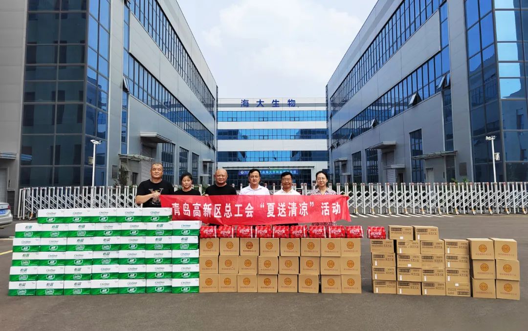 盛夏送清涼,關愛沁人心。青島高新區(qū)總工會聯(lián)合經(jīng)濟發(fā)展部到海大生物集團開展“夏送清涼”慰問活動,為三伏天堅守崗位的職工送來關愛和涼爽。